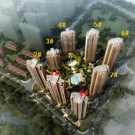 九龙仓月玺一共有八栋房子,3、4、5、6、7是坐北向南的房子,而1、2、8栋房子是偏向坐东北向西南的,这样做可能是受地块面积的影响吧!不过我经过时没有带罗盘是用手机上的指南针打的,整个楼盘是有两个朝向的房子,我们站在楼盘的前方左边是青龙位右边是白虎位,我们先看九龙仓月玺青龙位这边是月湖琴声的楼盘,而九龙仓月玺右边白虎位是华润中央公园的楼盘,就高度来讲很明显月湖琴声楼盘房子的高度明显高于华润中央公园的楼盘房子的高度,也就是说左边的青龙位明显的压制住了右边的白虎位,九龙仓月玺楼盘是属于龙虎环抱的格局。